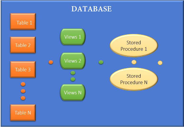 同样,我们有数据库,它是一种存放我们所有相互关联的表、视图、存储过程等的“家”。