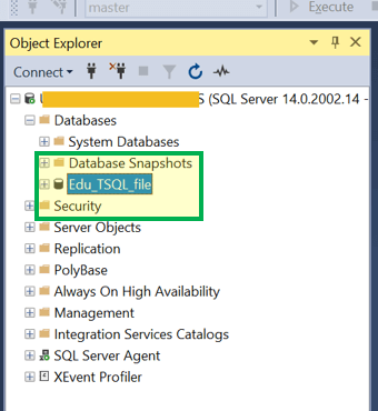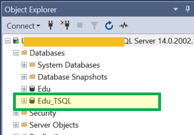 结果:我们可以在 SQL 对象资源管理器中看到 Edu_TSQL 已创建。