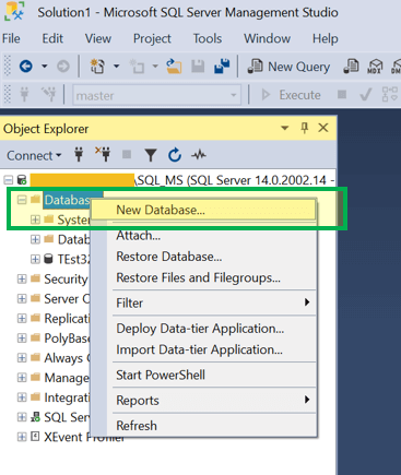 另一种方法是编写 T-SQL 查询来创建数据库并执行它。