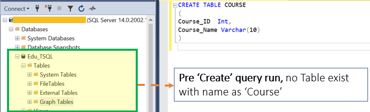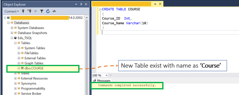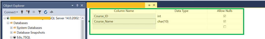 现在假设我们需要另一个像上面创建的 COURSE 表格。但是,我们只需要一列Course_Name,而不需要Course_ID。