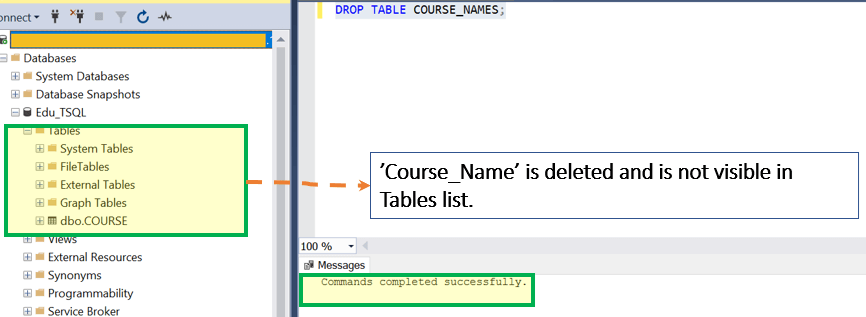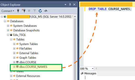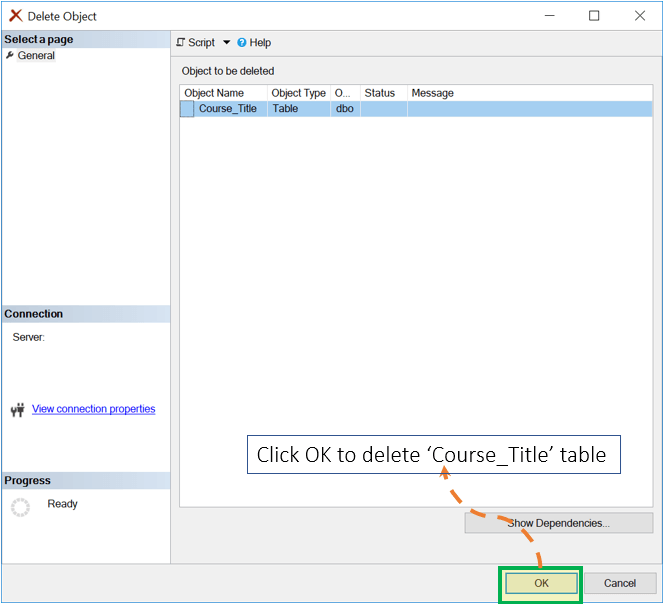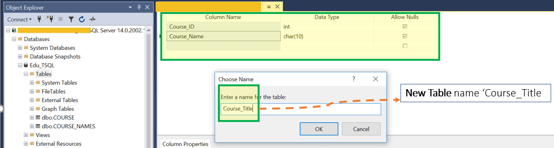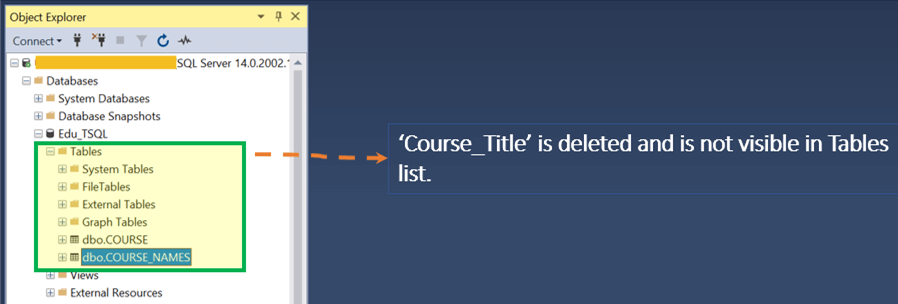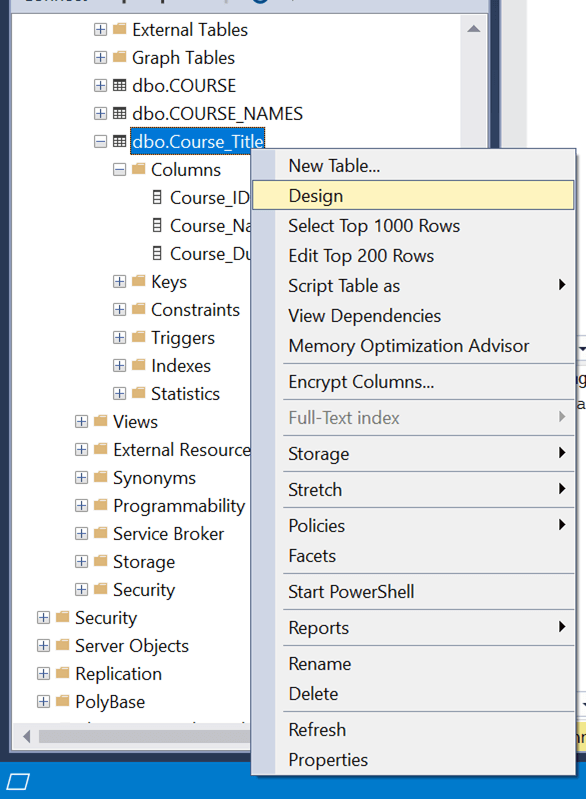 步骤 1) 右键单击现有表格>删除。表格名称“Course_Title”