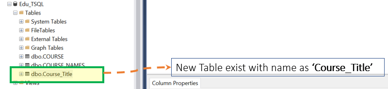 结果:单击“刷新”,我们可以看到名为Course_Title的新表格,其中有一列名为Course_Name。