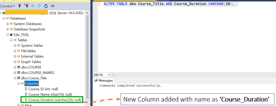 结果:在Course_Title 表格中,存在名为Course_Duration的新列。