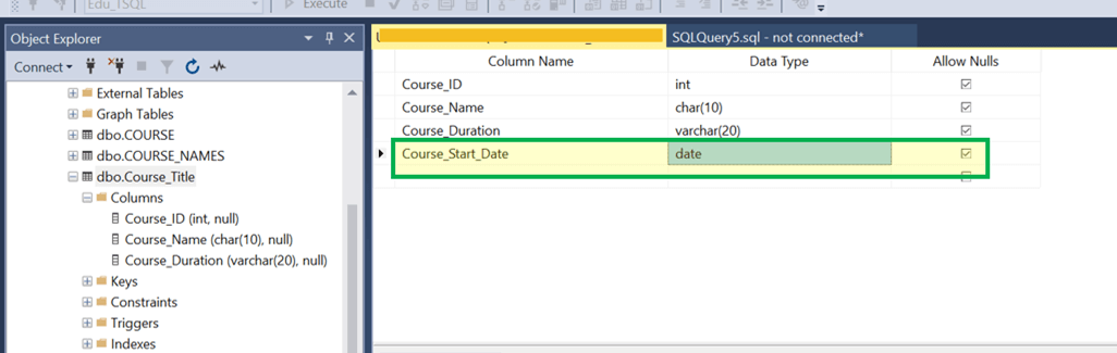结果:在Course_Title表格中,创建了名为Course_Start_Date的新列。