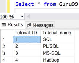 我们将在后续教程中使用“Guru99”表。