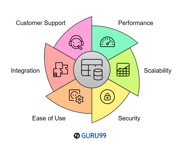 在 Guru99,我们致力于提供准确、相关和客观的信息。我们的编辑团队确保所有内容都经过严格的创作和审查流程,以保证提供可靠的资源。本指南包括免费和付费选项以适应任何预算,重点介绍深入的功能、优缺点和定价,以帮助您做出明智的决定。选择正确的 SQL 工具对于优化数据管理至关重要,我们关注可靠性、安全性、性能、可扩展性和集成,以为各种业务需求提供最佳解决方案。我们在审查工具时,会根据性能、易用性和安全性等因素重点关注以下几点。