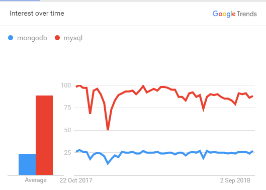 下图显示了 NoSQL 与 SQL 的 Google 趋势。