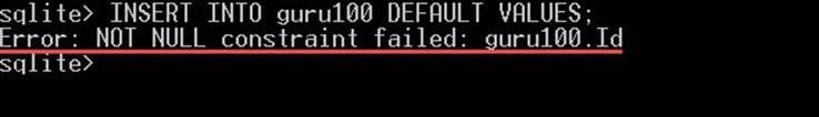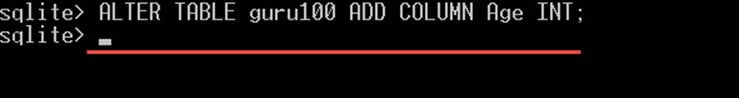 - 但是,为了验证是否已添加该列,我们可以使用命令 “.schema guru100”,这将为您提供表定义,您应该会看到我们刚刚添加的新列