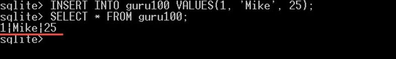 INSERT INTO guru100 VALUES(1, 'Mike', 25);
