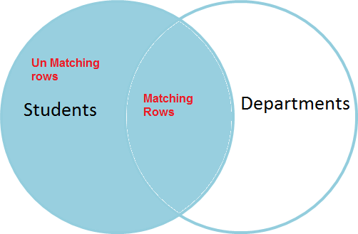 请注意,任何没有匹配部门的学生姓名,其部门名称值将为“null”,因为没有匹配它的值,而这些值是不匹配行中的值。