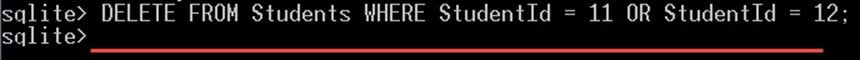 表达式“StudentId = 11 OR StudentId = 12”对于 ID 为 11 和 12 的学生将为 true。因此,DELETE 子句将应用于两者,并且只删除它们。