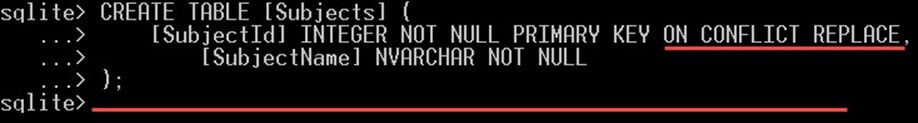 [SubjectId] INTEGER NOT NULL PRIMARY KEY ON CONFLICT REPLACE,