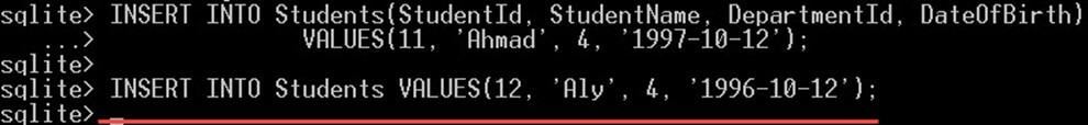 INSERT INTO Students(StudentId, StudentName, DepartmentId, DateOfBirth)