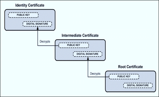 下图表示所有三种证书——**根证书、中间证书和服务器证书。**