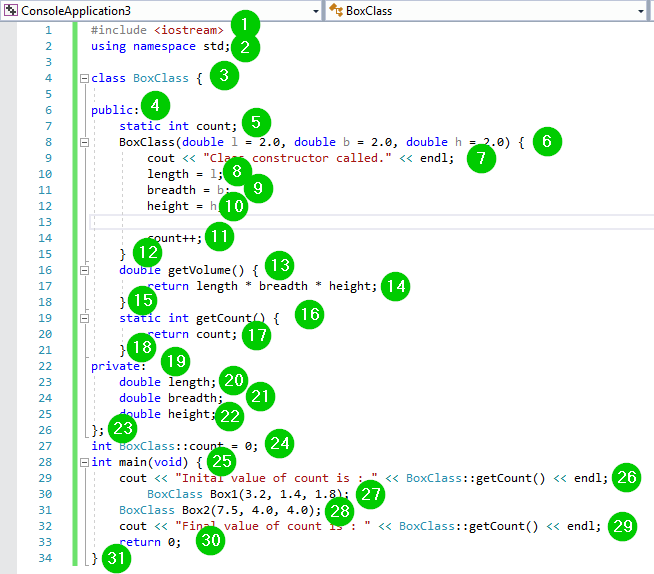 cout << "Final value of count is : " << BoxClass::getCount() << endl;