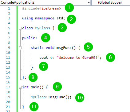 - 在代码中包含 std 命名空间,以便在不调用它的情况下使用其类。