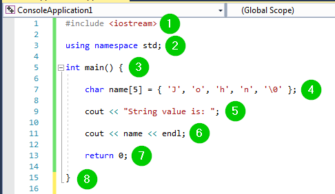 - 在我们的代码中包含 iostream 头文件。它将允许我们从控制台读取和写入。