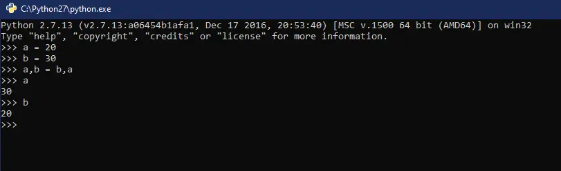 Enter value of A: 20 Enter value of B: 30 A = 20 , B = 30 Now, A = 30 , B = 20