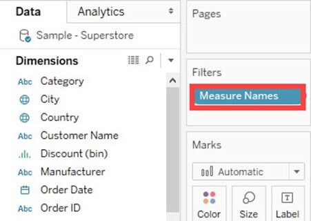 如果您想在单个可视化中分析多个度量,则可以使用度量名称和度量值。