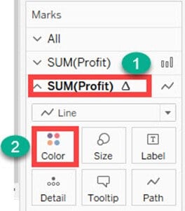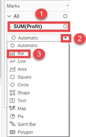 - 在标记卡列表中选择“SUM(Profit)”。