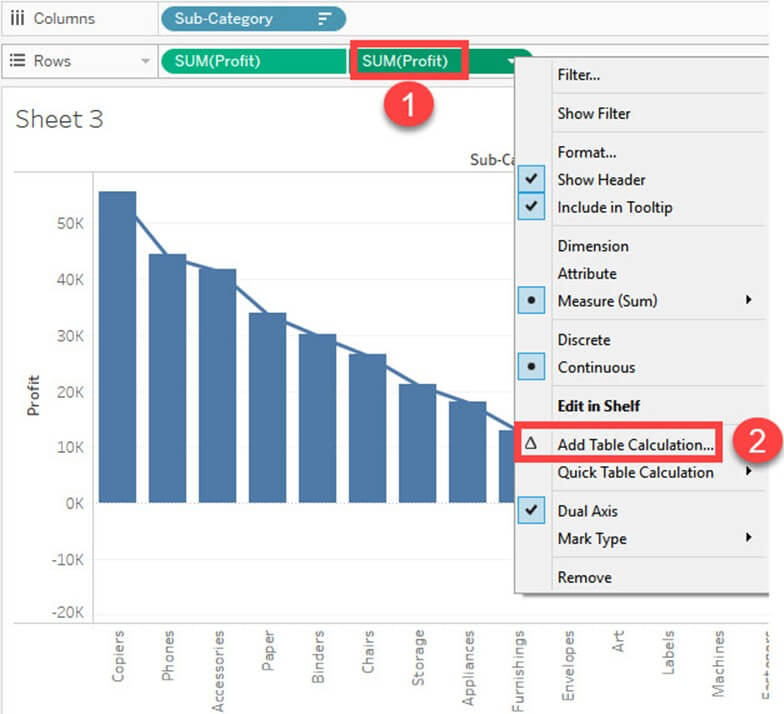 - 右键单击“行”中存在的“SUM (Profit)”。