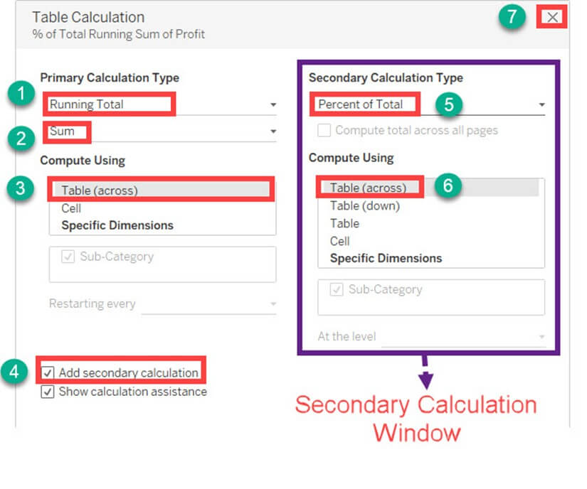 - 单击“沿表(跨)计算”。