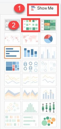热力图可以通过不同度量的大小和颜色来可视化数据。可以使用热力图同时可视化两个不同的度量。可以将一个度量分配给大小,而另一个度量分配给热力图的颜色。创建热力图的过程如下。