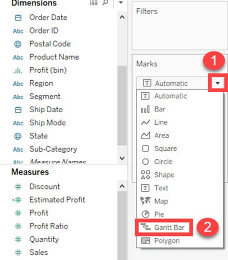 - 从列表中选择“甘特条”。