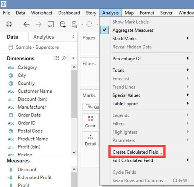 - 键入度量的估计值。在此示例中,以利润作为度量。因此,为估计利润创建了计算字段。