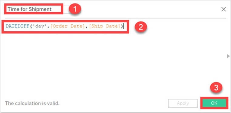 - 将计算字段的名称输入为“装运时间”。