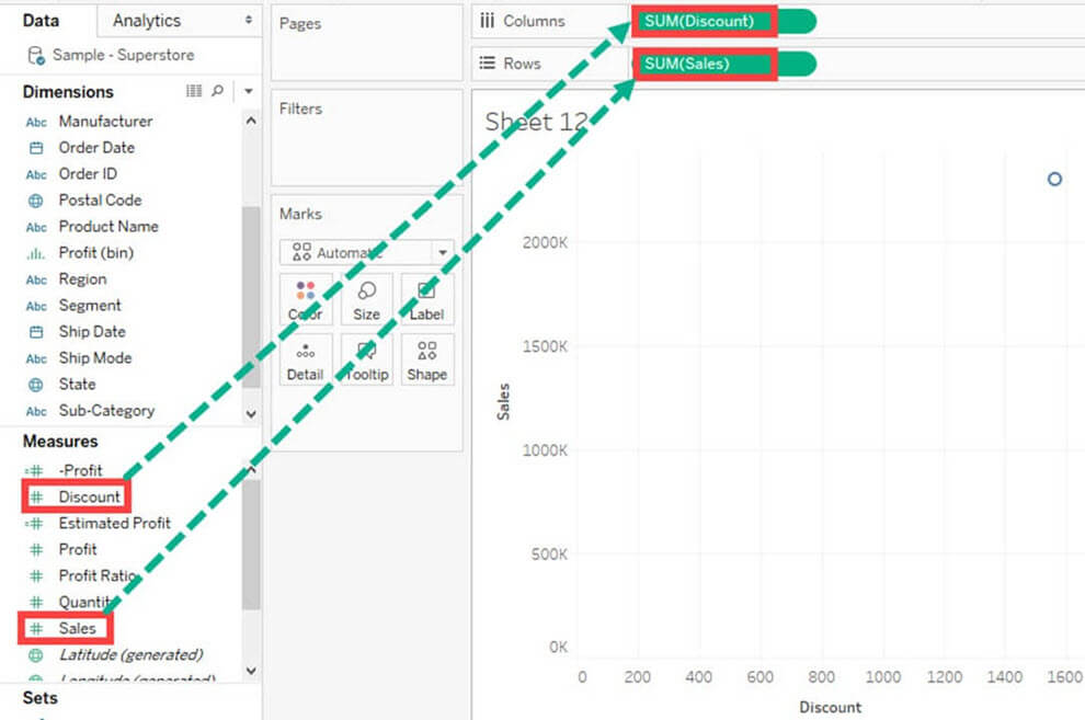 - 从度量中选择“折扣”。