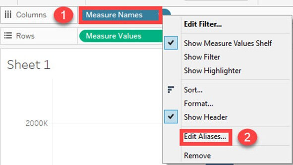 - 右键单击“列”中的度量名称。