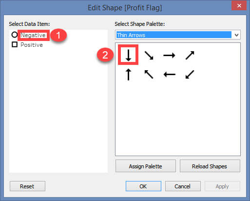 - 现在点击调色板中存在的向下箭头形状。这将将向下箭头形状分配给“Negative”(负)。