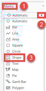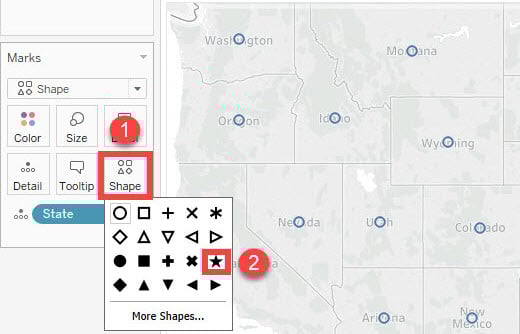 - 点击“Marks card”(标记卡)中的“Shape”(形状)图标。
