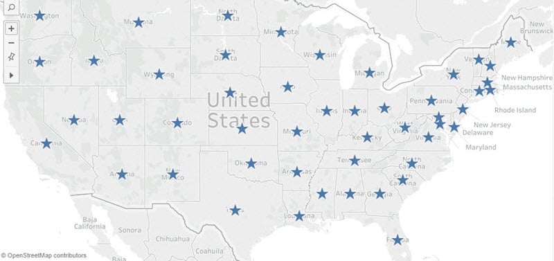 完全填充的地图包括整个地理区域的数据点。它使用多边形覆盖了地理位置的整个区域。因此,使用 Tableau 中的填充地图选项可以创建交互式且高度定义的视觉效果。