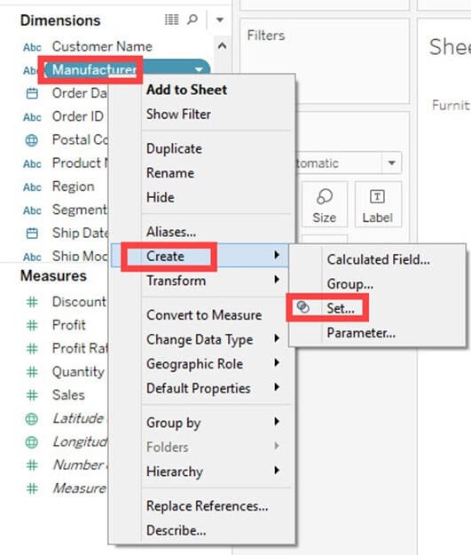集合用于从数据集中存在的字段中创建成员集合。它充当独立的字段或维度。构建集合的过程如下。