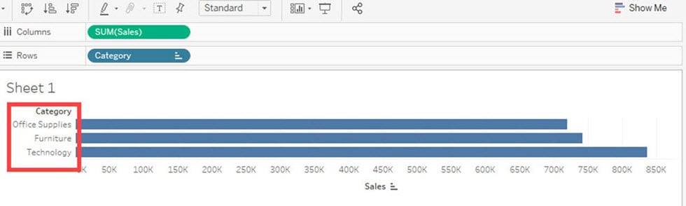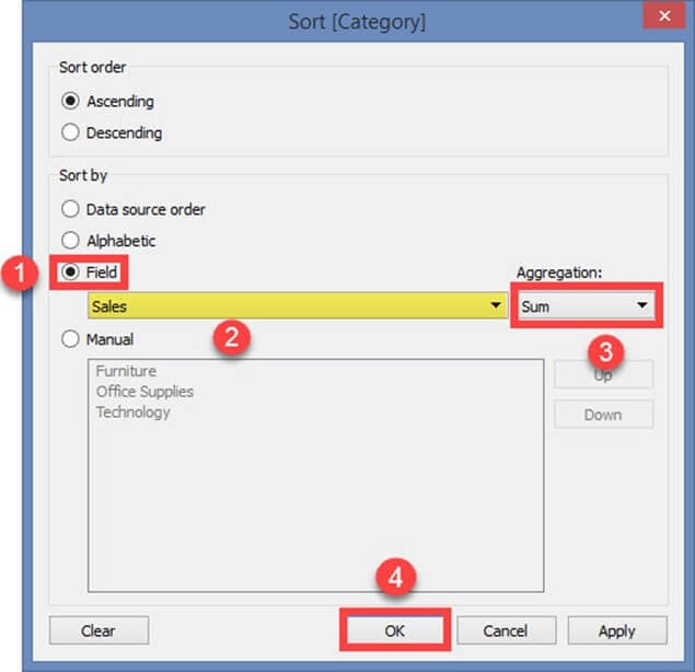 在此示例中,类别是根据名为“Sales”的另一个字段进行排序的。