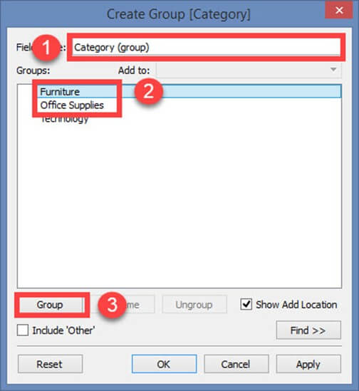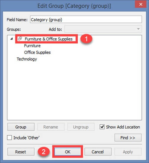 1. 它在 Tableau 中创建“Furniture”和“Office supplies”的组。