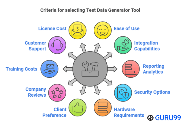 在 Guru99,我们通过关注准确、相关和客观的信息来优先考虑可信度。经过 80 多个小时的研究,我分析了 25 多个最佳虚拟测试数据生成工具,涵盖了免费和付费选项。这份全面公正的指南探讨了它们的功能、优缺点和定价。我们严格的内容创建和审查流程保证了信息丰富且可靠的见解。这份评论可能有助于您发现最值得信赖的测试数据生成器,因此请务必阅读整篇文章以获取独家见解。在选择在线测试数据生成工具时,请考虑以下关键因素。