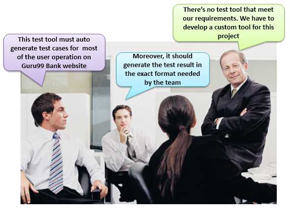 示例:你希望为 Guru99 Bank 项目找到一个测试工具。你希望此工具能够满足项目的一些特定要求。