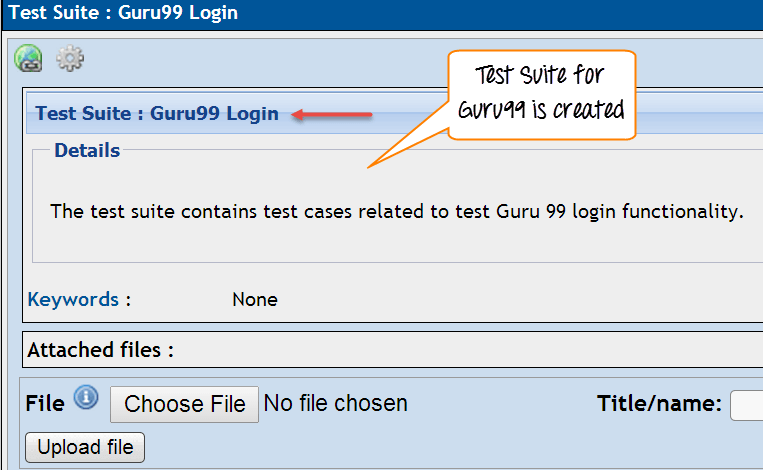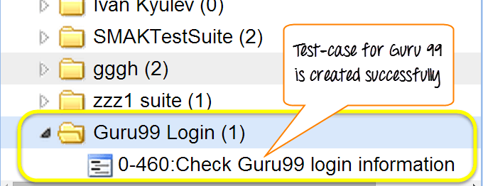 您可以看到 Guru 99 的测试套件已创建