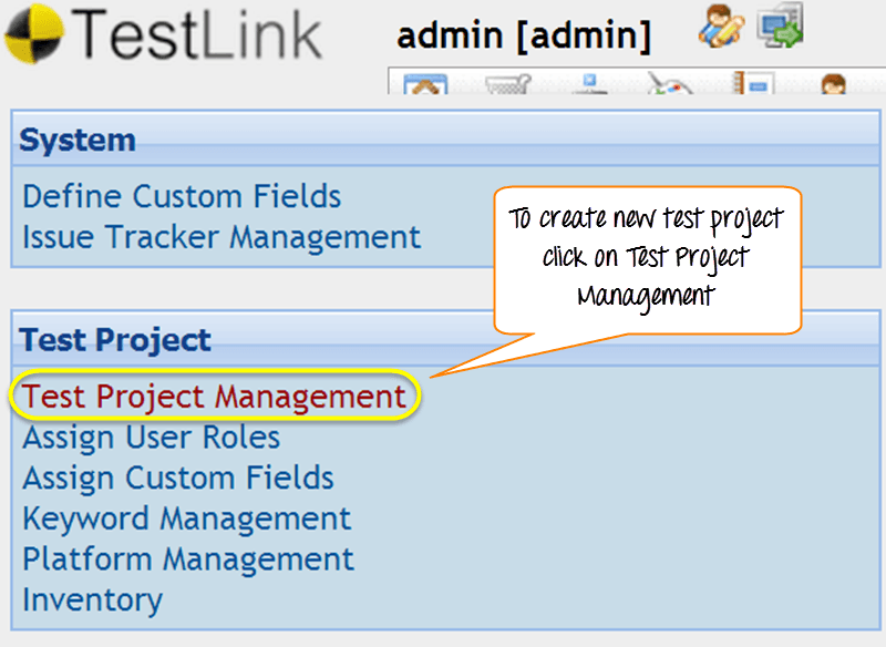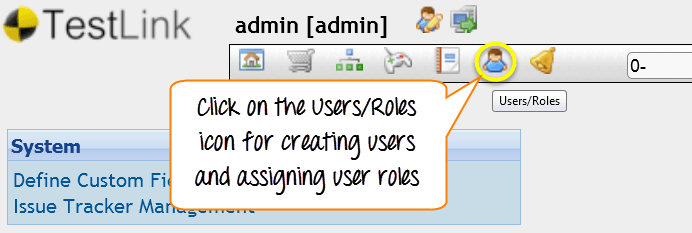 步骤 1: 从 Testlinks 主页,点击导航栏上的用户/角色图标