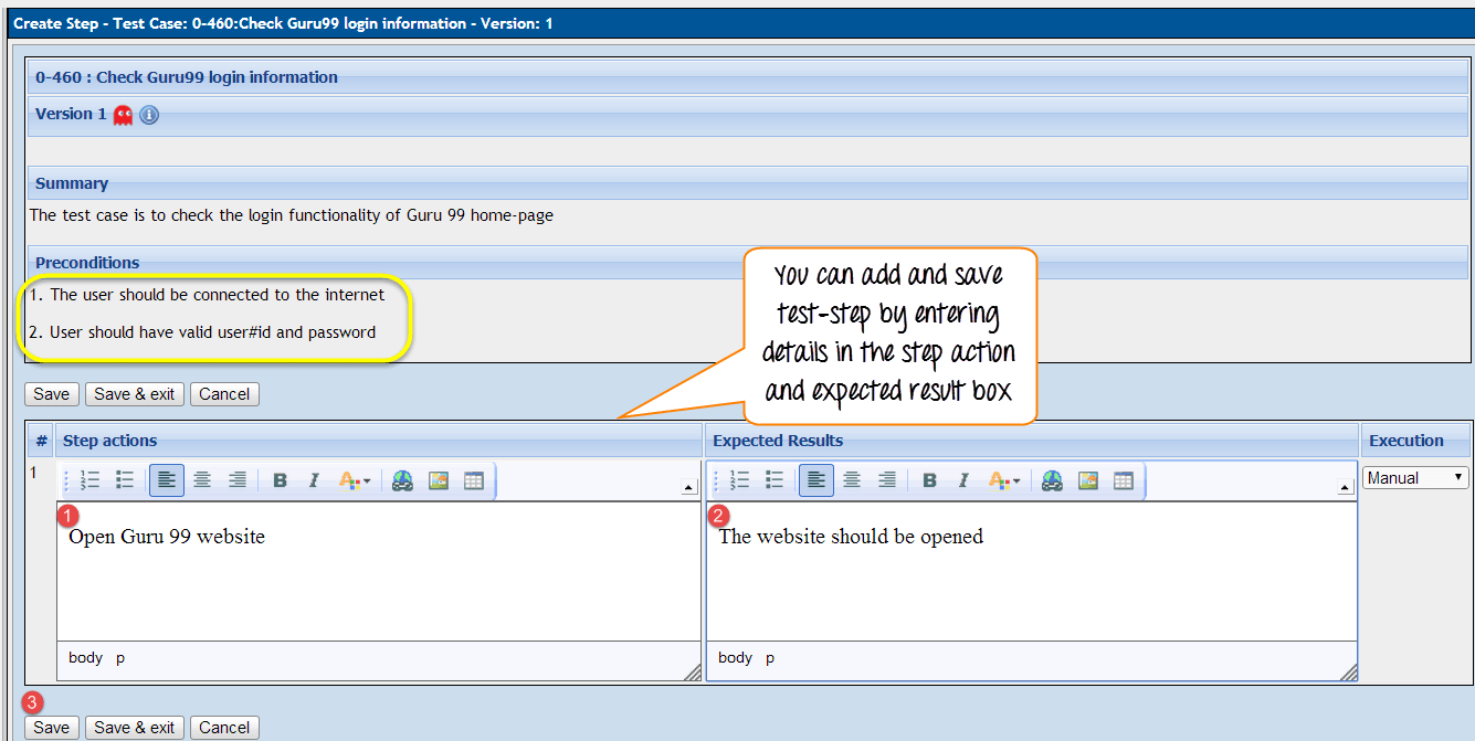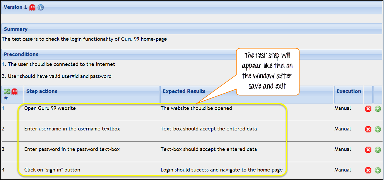 步骤 8) 一旦您保存并退出测试步骤,它将如下所示
