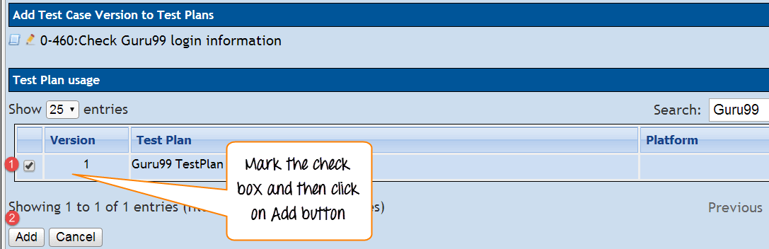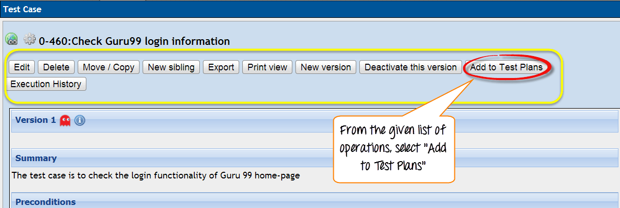 为了执行测试用例,它应被分配给测试计划。这里我们将看到如何将测试用例分配给测试计划。