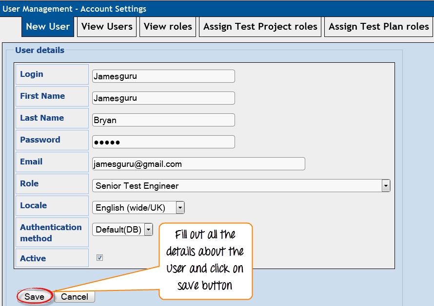 步骤 3:填写所有用户详细信息,然后点击“保存”按钮