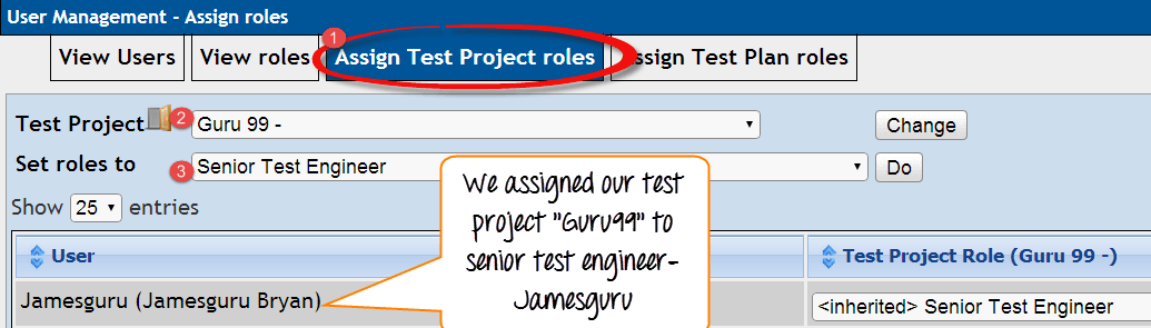 - 点击 “分配测试项目角色” 选项卡