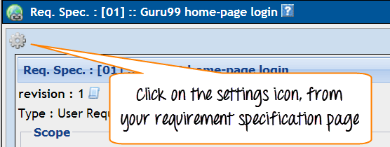 步骤 5:从需求规范主页选择设置按钮。它将打开另一个窗口。