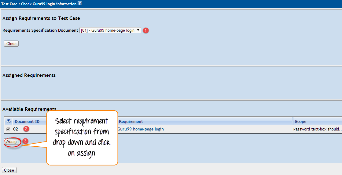 步骤 2: 要将需求规范分配给测试用例,您需要按照以下步骤操作