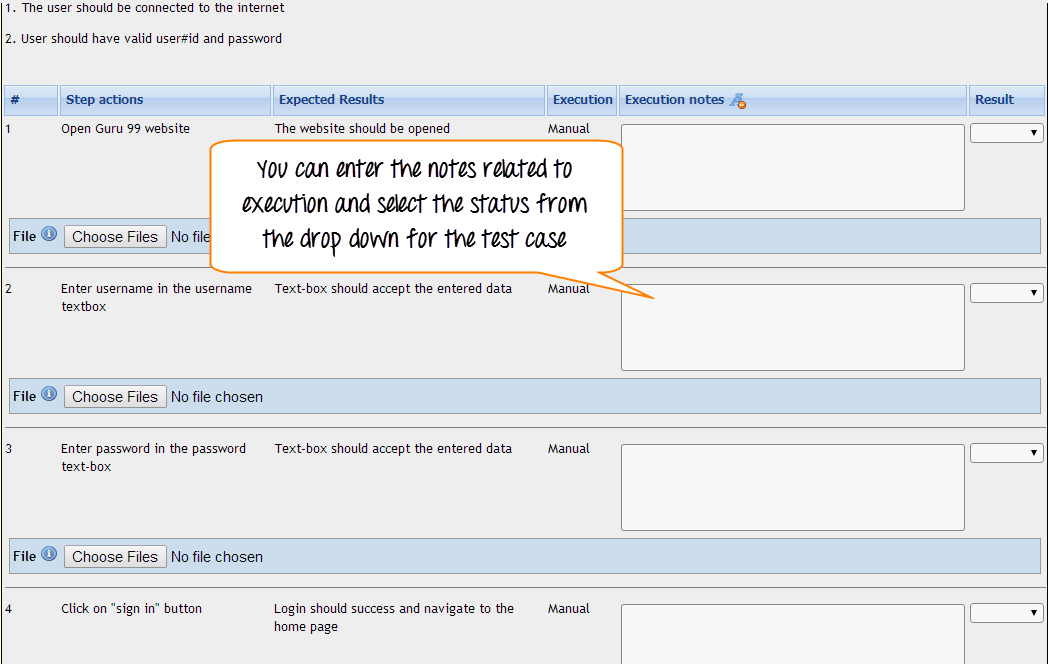 步骤 5: 在同一页面上,您需要填写关于测试用例执行的类似详细信息。填写详细信息,选择状态,然后点击“保存执行”。