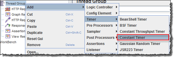 右键单击**线程组** -> 定时器 -> 常数定时器